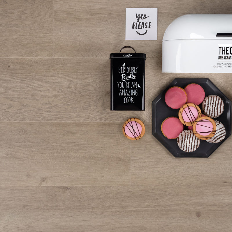 Zoek je een complete waterproof laminaatvloer? Dan is de brede plank Kerrie van Douwes Dekker Krachtig-collectie precies wat je zoekt. De vloer heeft een intrigerend decor met levendige texturen! De Douwes Dekker Krachtig-collectie is een unieke serie laminaat plankenvloeren. Een zorgvuldig gekozen collectie van vier laminaatvloeren. De laminaatplanken zijn geproduceerd met een pressed bevel. Dit is een revolutionaire nieuwe techniek waarbij het patroon van de bovenzijde van de vloer doorloopt in de 4-zijdige vellingkant. Hierdoor zijn de vloeren 100% waterbestendig en daarom zeer geschikt voor iedere ruimte in huis! Let op: het vocht dat achterblijft op de vloer moet binnen 24 uur verwijderd worden. Samen met de embossed-in-register zorgt deze nieuwe techniek voor de meest natuurgetrouwe afwerking.